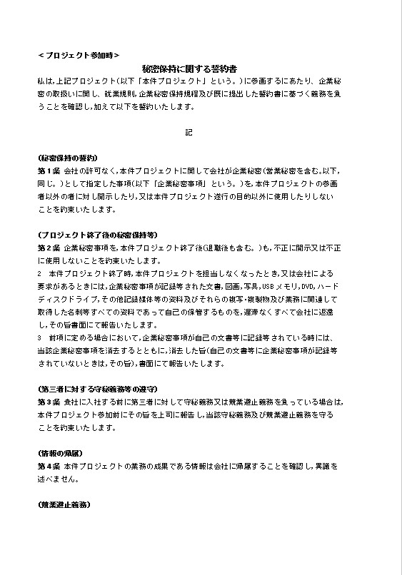 秘密保持に関する誓約書-プロジェクト参加時のテキスト