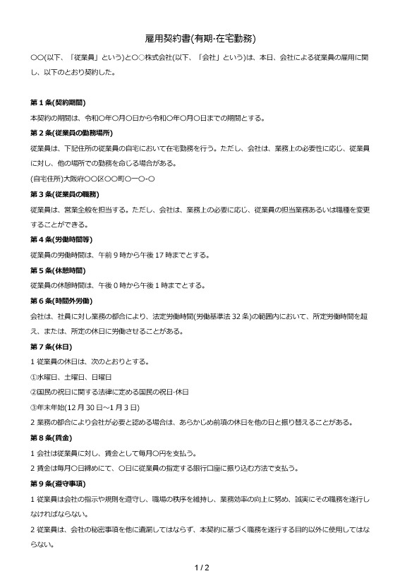雇用契約書(有期·在宅勤務)
