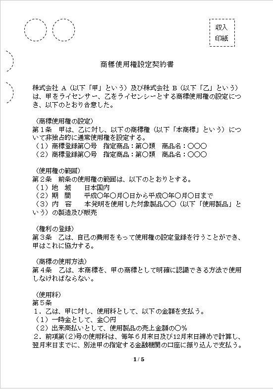 商標使用権設定契約書