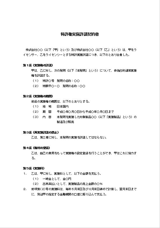 特許権実施許諾契約書