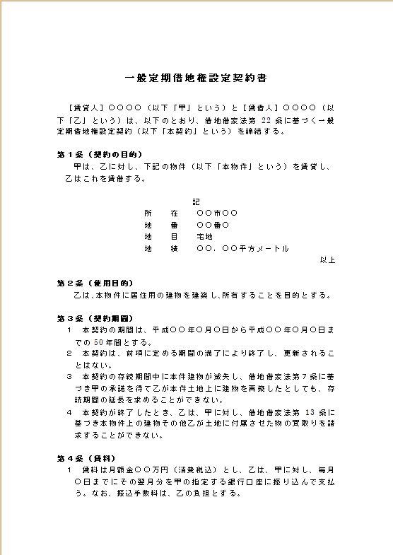 一般定期借地権設定契約書のテキスト