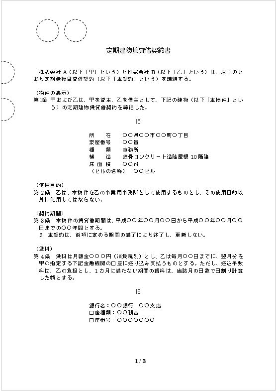 定期建物賃貸借契約書(1)
