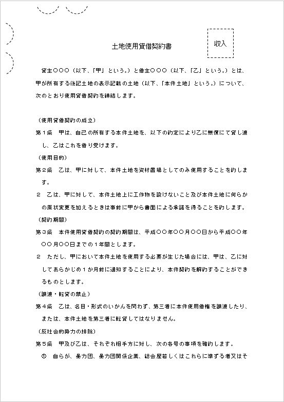 土地使用貸借契約書