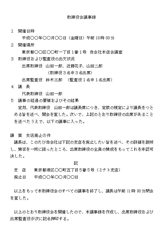 臨時株主総会議事録~支店の廃止~