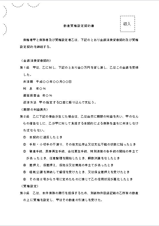 第1条 甲は、乙に対し、下記のとおり金〇万円を貸し渡し、乙はこの金銭を受領した。