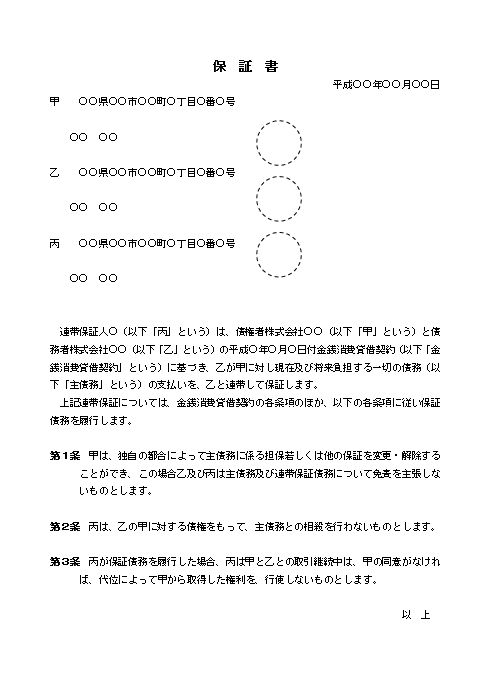連帯保証契約のテキスト