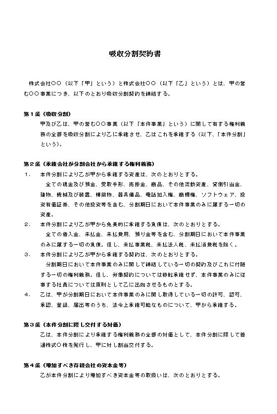 合併契約書(吸収分割)
