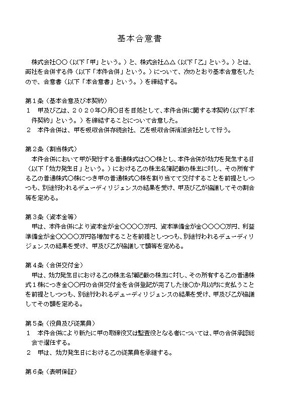 吸収合併に関する基本合意書のテキスト