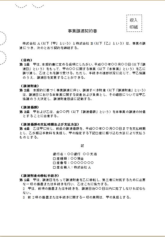 事業譲渡契約書