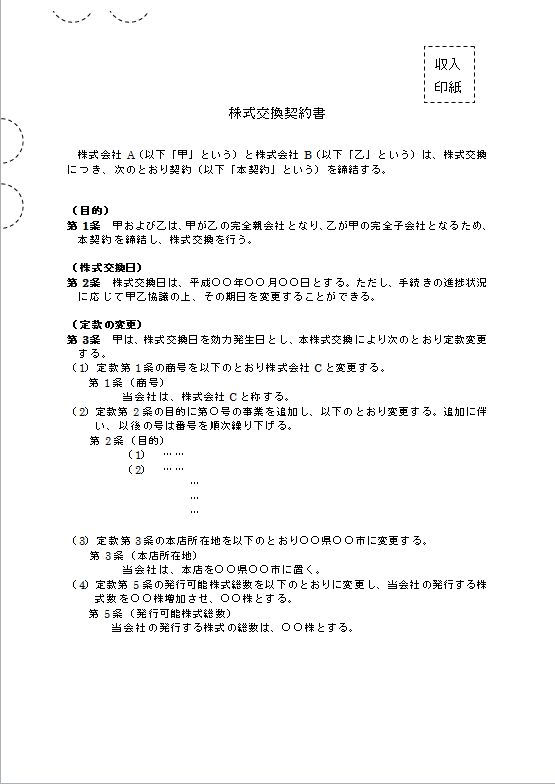 株式交換契約書のテキスト