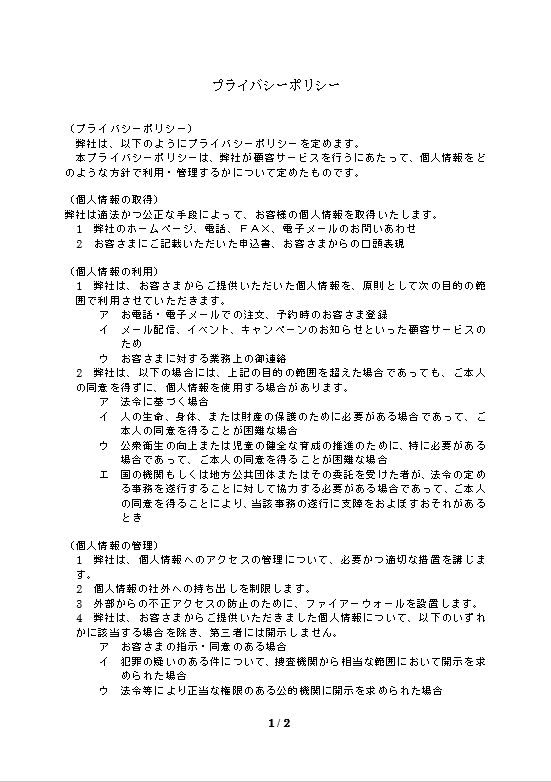 1 弊社は、個人情報へのアクセスの管理について、必要かつ適切な措置を講じます。