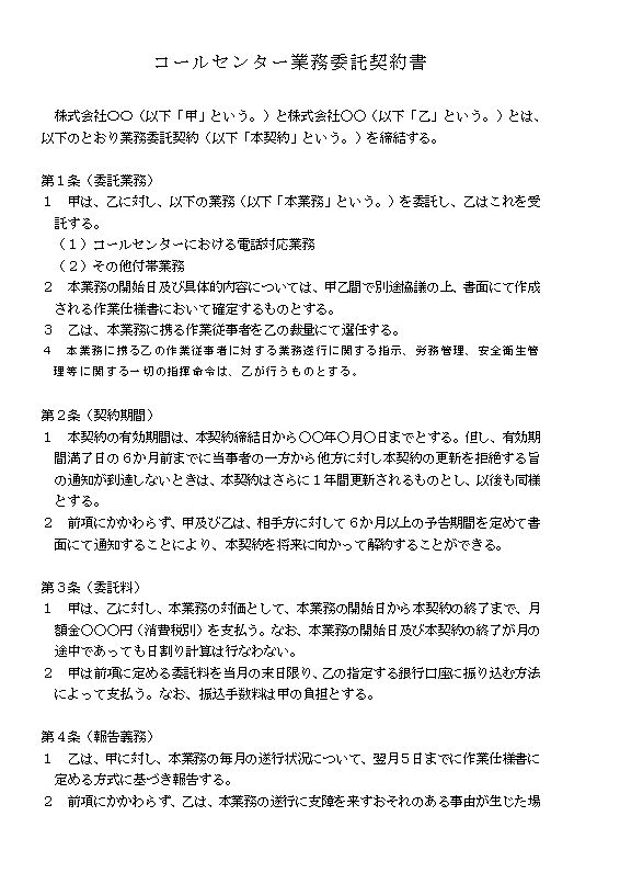 コールセンター業務委託契約書