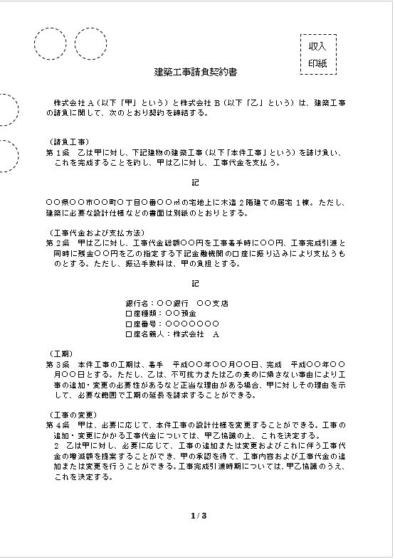 建築工事請負契約書のテキスト