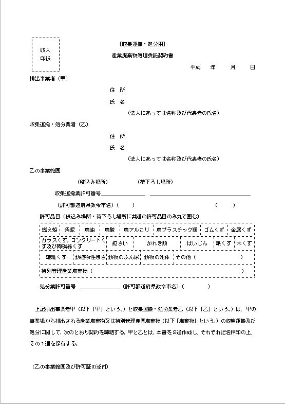 産業廃棄物処理委託モデル契約書(収集運搬・処分用)