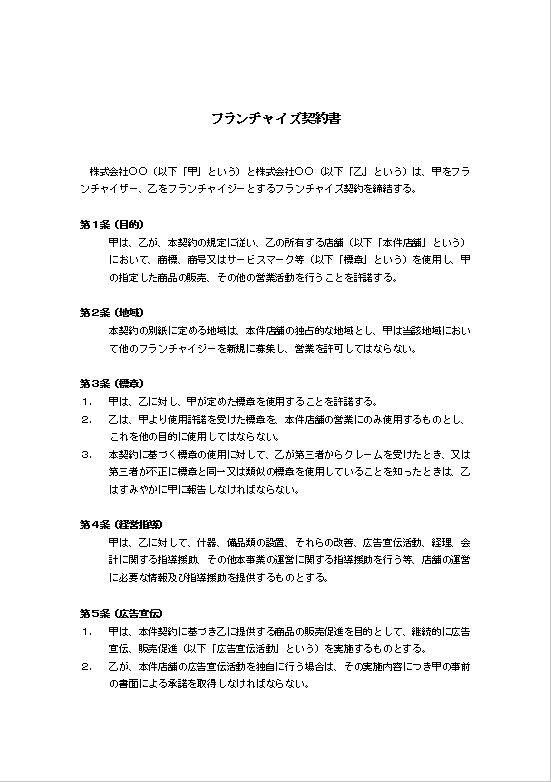 フランチャイズ契約書(地域独占契約)のテキスト