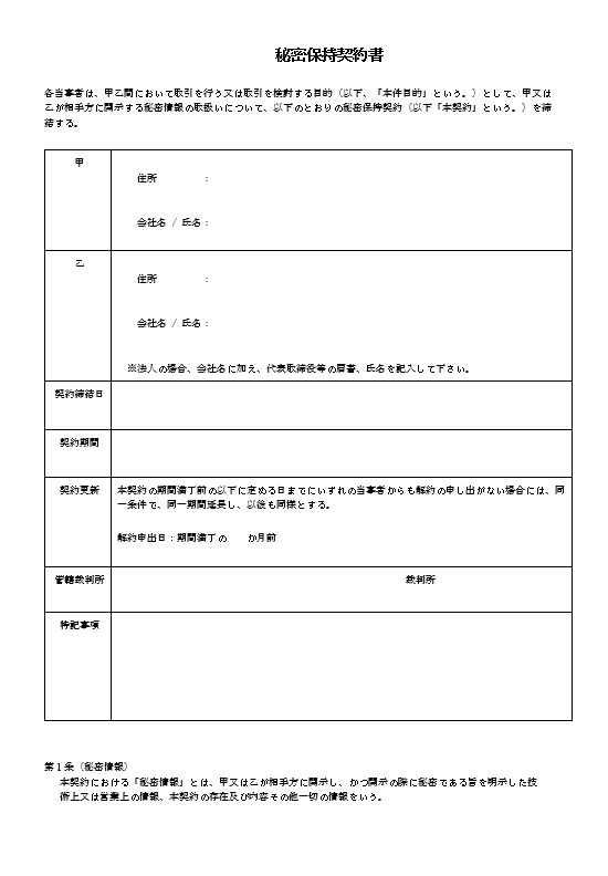 秘密保持契約書