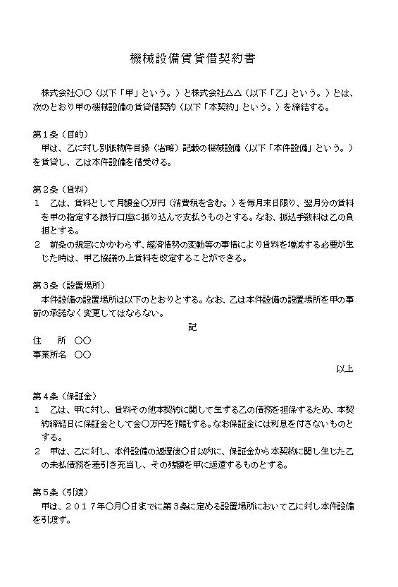 機械設備賃貸借契約書