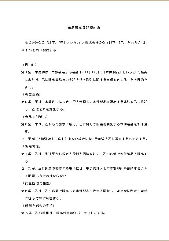 第2条 甲は、本契約に基づき、甲を代理して本件製品を販売する業務を乙に委託し、乙はこれを受託する。