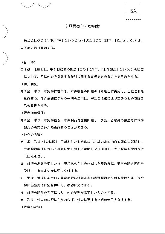 第2条 甲は、本契約に基づき、本件製品の販売の仲介を乙に委託し、乙はこれを受託する。仲介業務にかかる一切の費用は、甲乙の協議により定めるものを除き乙の負担とする。