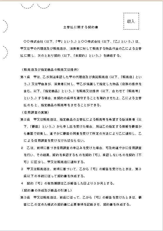 立替払に関する契約書のテキスト
