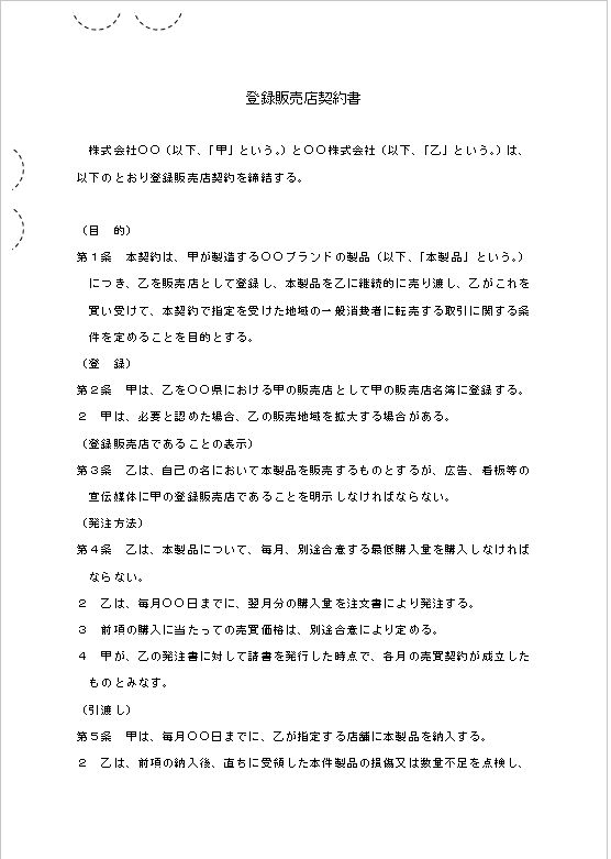 登録販売店契約書のテキスト