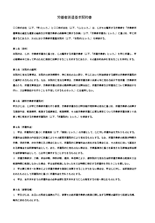労働者派遣基本契約書のテキスト