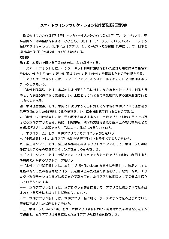 スマートフォンアプリケーション制作業務委託契約書のテキスト