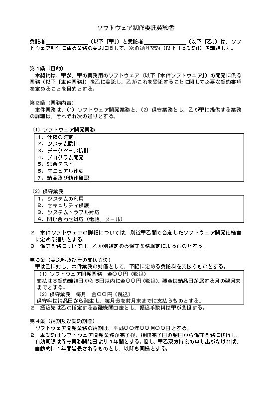 ソフトウェア制作委託契約書