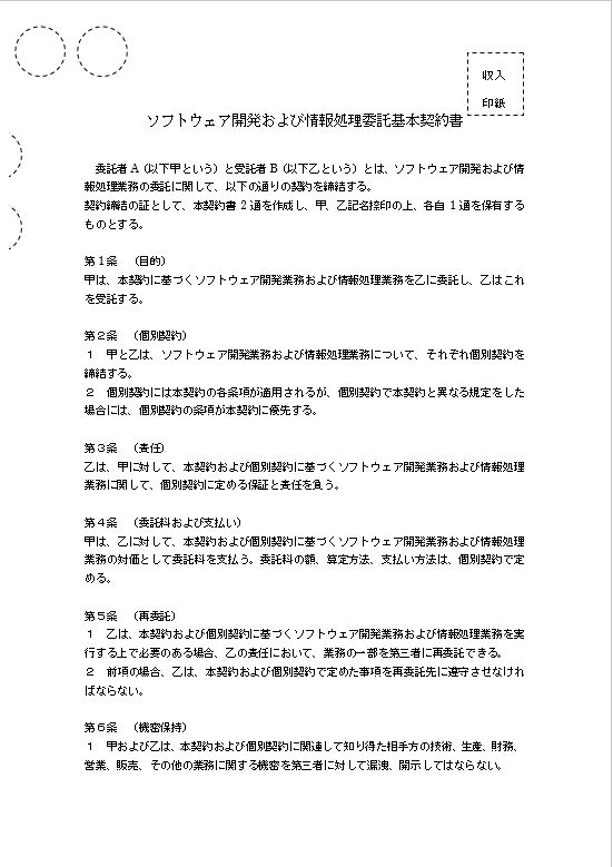 ソフトウェア開発および情報処理委託基本契約書